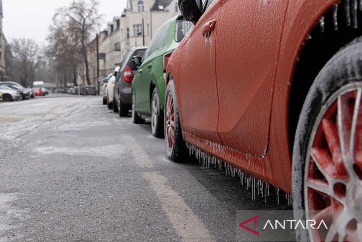 Kendaraan tertutup es hitam di Distrik Pankow, Berlin, Jerman, Senin (26/1/2026). ANTARA/Xinhua/Zhang Haofu/aa.