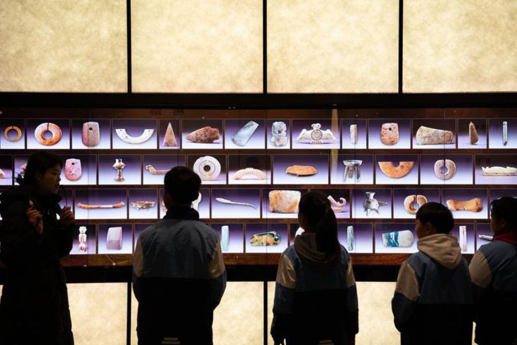 Para pelajar mengunjungi Museum Situs Lingjiatan di wilayah Hanshan, Kota Ma'anshan, Provinsi Anhui, China, pada 13 Januari 2026. (Xinhua/Zhang Duan)Pewarta: Xinhua